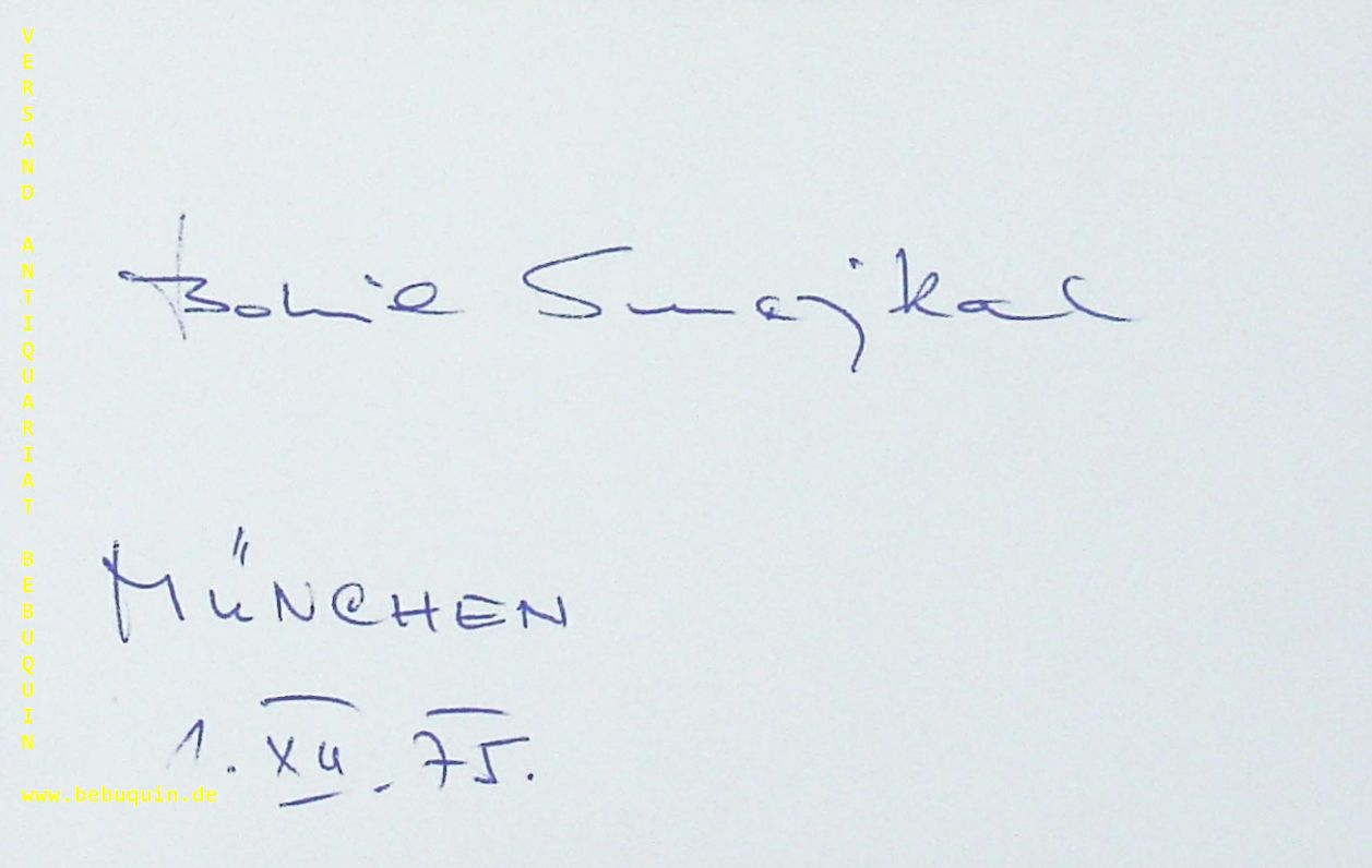 SMEJKAL, Bohumil (Violinist): eigenhändig signierte und datierte Autogrammkarte. München (Philharmonie), 1.12.1975. 8 x 12,5 cm. Karteikarte.