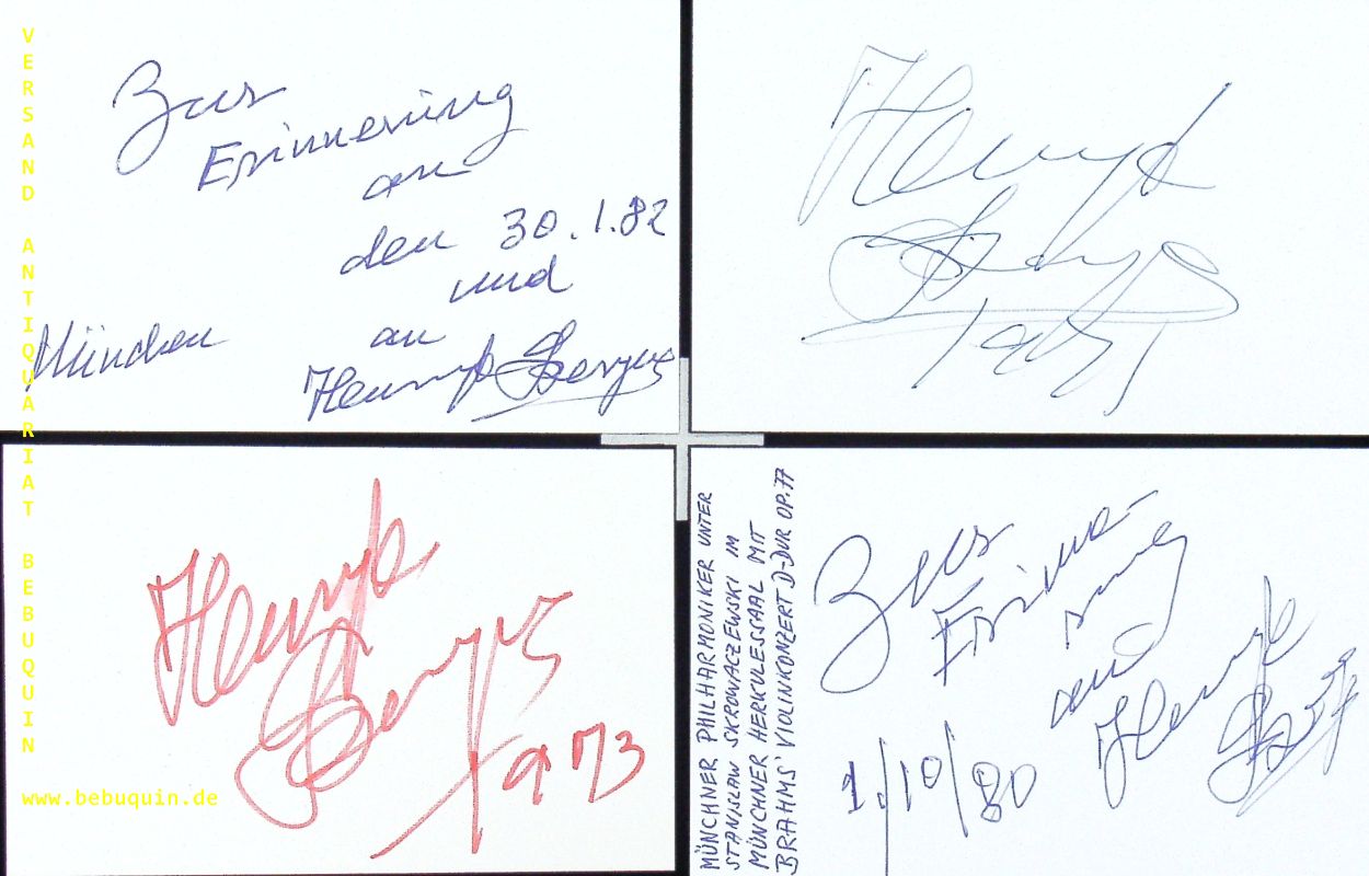 SZERYNG, Henryk (Violinist): 8 eigenhändig signierte und datierte Autogrammkarten. München (Herkulessaal), 1969 – 1984. 8 x 12,5 cm. 8 Karteikarten. Henryk Szeryng (* 22. September 1918 in Warschau; † 3. März 1988 in Kassel) war ein polnisch-mexikanischer Geiger, Violinpädagoge, Herausgeber, Komponist und Diplomat, der seit 1946 in Mexiko lebte und seit dem 21. Oktober 1948 die mexikanische Staatsbürgerschaft hatte. (Wikipedia)