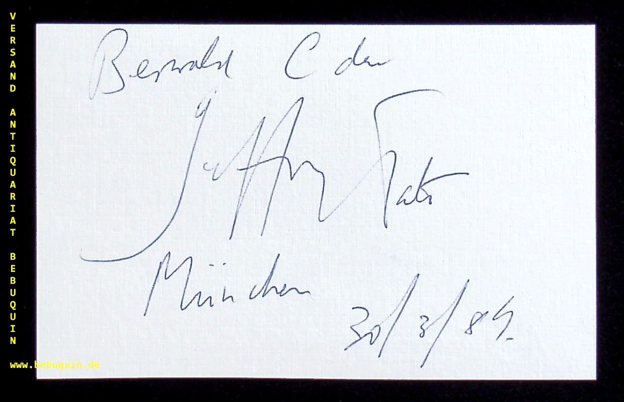 TATE, Jeffrey (Dirigent): eigenhändig signierte und datierte Autogrammkarte. München, 30.3.1989. 8 x 12,5cm Karteikarte. Sir Jeffrey Tate (* 28. April 1943 in Salisbury, England; † 2. Juni 2017 in Bergamo, Italien) war ein britischer Mediziner und Dirigent. (Wikipedia)