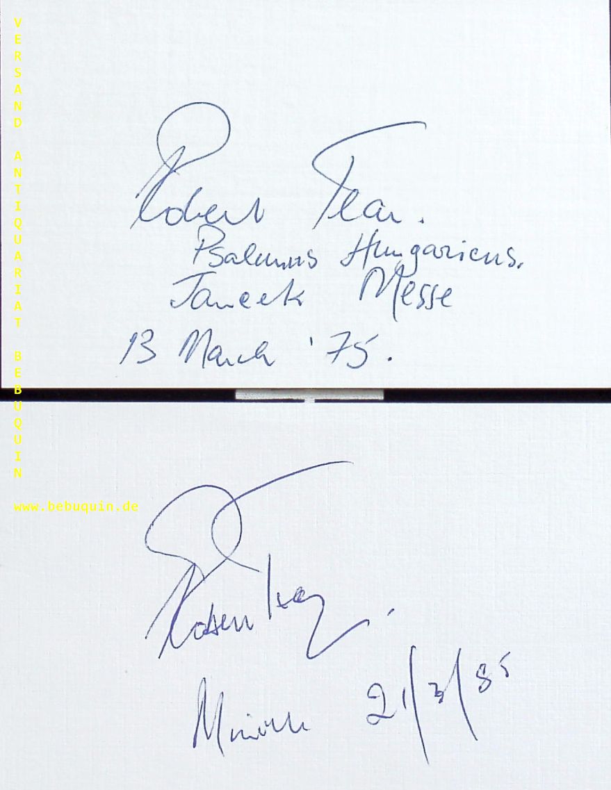 TEAR, Robert (Tenor): 2 eigenhändig signierte und datierte Autogrammkarte. München, 1975 + 1985. 8 x 12,5cm 2 Karteikarte. Robert Tear (* 8. März 1939 in Barry, Wales; † 29. März 2011 in London) war ein britischer Opern- und Oratoriensänger (lyrischer Tenor). Er galt neben Peter Pears und Philip Langridge als einer der besten britischen Tenöre seiner Zeit. (Wikipedia)