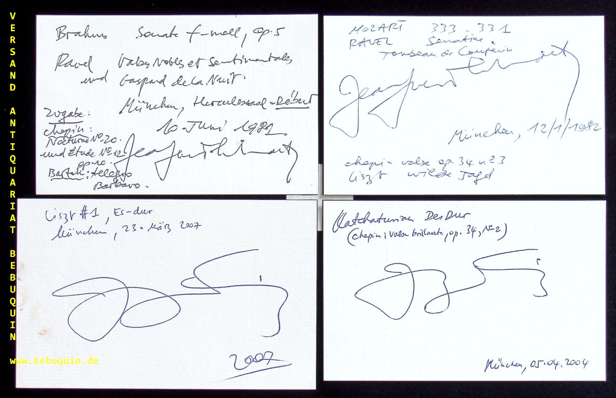 THIBAUDET, Jean-Yves (Pianist): 4 eigenhändig signierte Autogrammkarten. München (Herkulessaal), 1982 – 2007. 8 x 12,5 cm. 4 Karteikarten. Jean-Yves Thibaudet (* 7. September 1961 in Lyon, Frankreich) ist ein französischer Pianist. (Wikipedia)