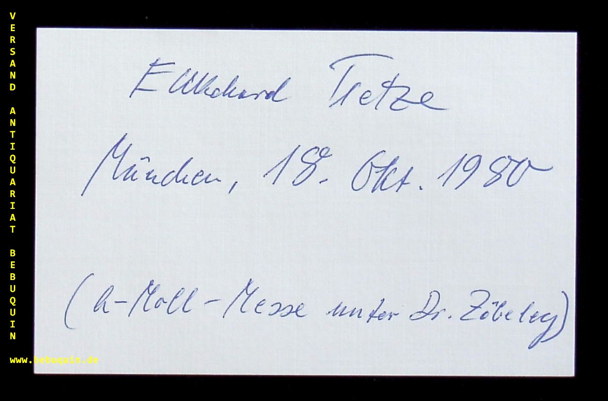 TIETZE, Ekkehard (Organist): eigenhändig signierte und datierte Autogrammkarte. München (Philharmonie), 18.10.1980. 8 x 12,5 cm. Karteikarte. Ekkehard Tietze (1957 bis 1979).