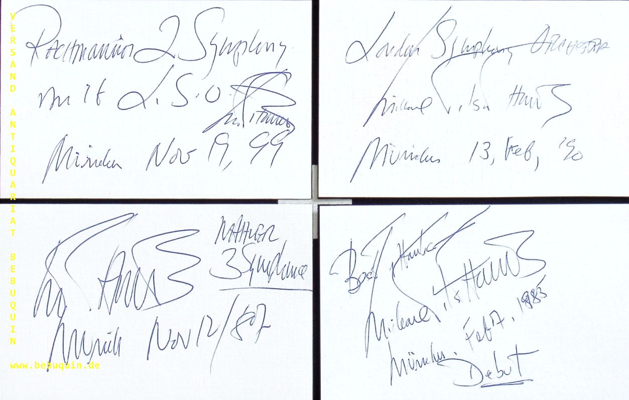 TILSON THOMAS, Michael (Dirigent): 7 eigenhändig signierte und datierte Autogrammkarte. München (Philharmonie), 1985 – 2007. 8 x 12,5 cm. 7 Karteikarte. Michael Tilson Thomas (auch als MTT bekannt; * 21. Dezember 1944 in Los Angeles, Kalifornien) ist ein US-amerikanischer Dirigent, Pianist und Komponist. Er war von 1995 bis 2020 Chefdirigent des San Francisco Symphony Orchestra. (Wikipedia)
