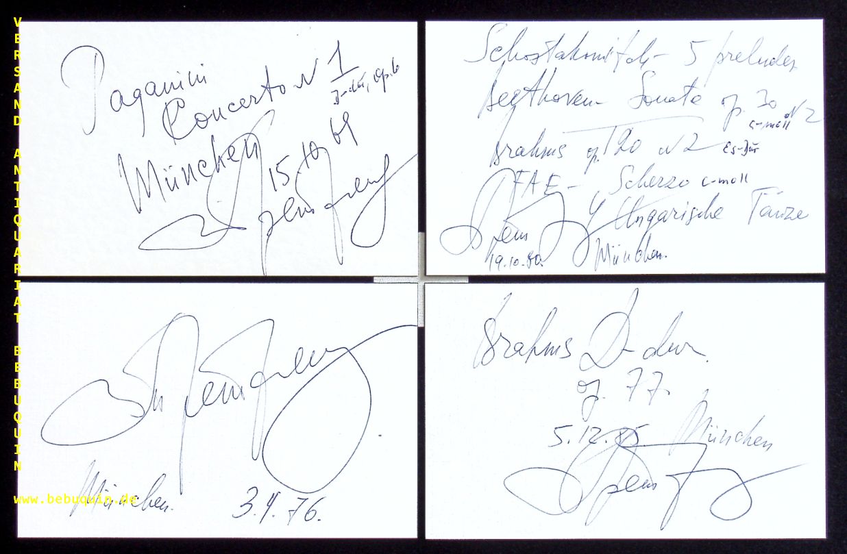 TRETJAKOW, Viktor (Dirigent, Violinist): 10 eigenhändig signierte und datierte Autogrammkarten. München (Herkulessaal), 1969 – 1992. 8 x 12,5 cm. 10 Karteikarten. eine mit Knickspur. Wiktor Wiktorowitsch Tretjakow (* 17. Oktober 1946 in Krasnojarsk, Sibirien) ist ein russischer Violinist und Dirigent. (Wikipedia)