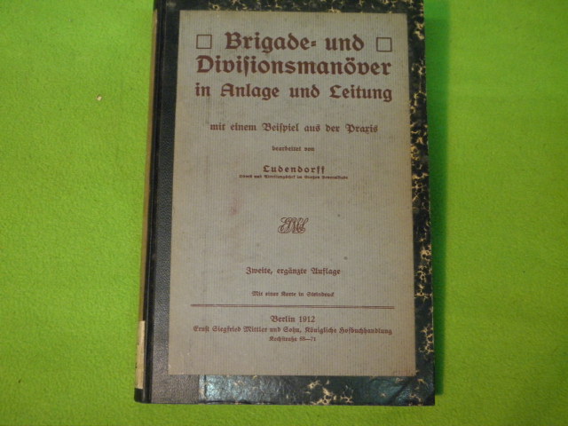 LUDENDORFF, Friedrich Wilhelm: Brigade- und Divisionsmanöver in Anlage und Leitung. Mit einem Beispiel aus der Praxis. 2. ergänzte Aufl. Berlin (Mittler), 1912. Gr. 8°. VII, 195 S. mit einer Karte in Steindruck. HLn der Zeit unter Verwendung der Originaldeckel. Ordnungsgemäß aus Bundeswehrbeständen ausgesondertes Bibliotheksexemplar (Stempel, Rückenschild), feines Ex.