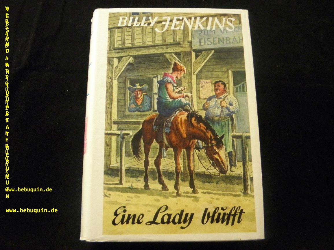 BILLY JENKINS.– KRÜGER, Nils: Eine Lady blufft. Sinzig (Uta), 1954. 256 S. farb. ill. OPb. mit OUmschl. gestempeltes Leihbuch. = Billy Jenkins Wild – West – Erzählungen, Bd. 101. 1. Aufl. dieser Ausgabe.