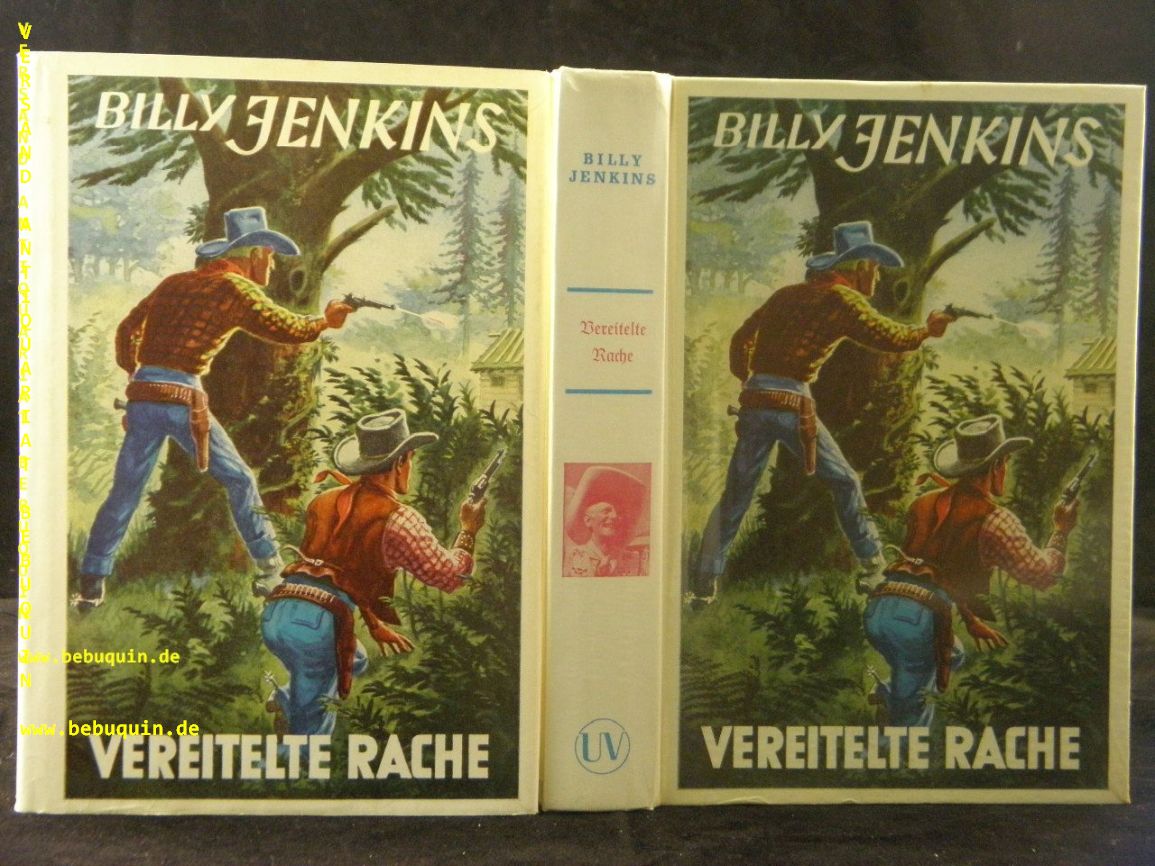 BILLY JENKINS.– HOLLIDAY, Chic: Vereitelte Rache. Sinzig (Uta), 1953. 256 S. farb. ill. OPb. mit OUmschl. schönes Ex. = Billy Jenkins Wild – West – Erzählungen, Bd. 54. 1. Aufl. dieser Ausgabe.