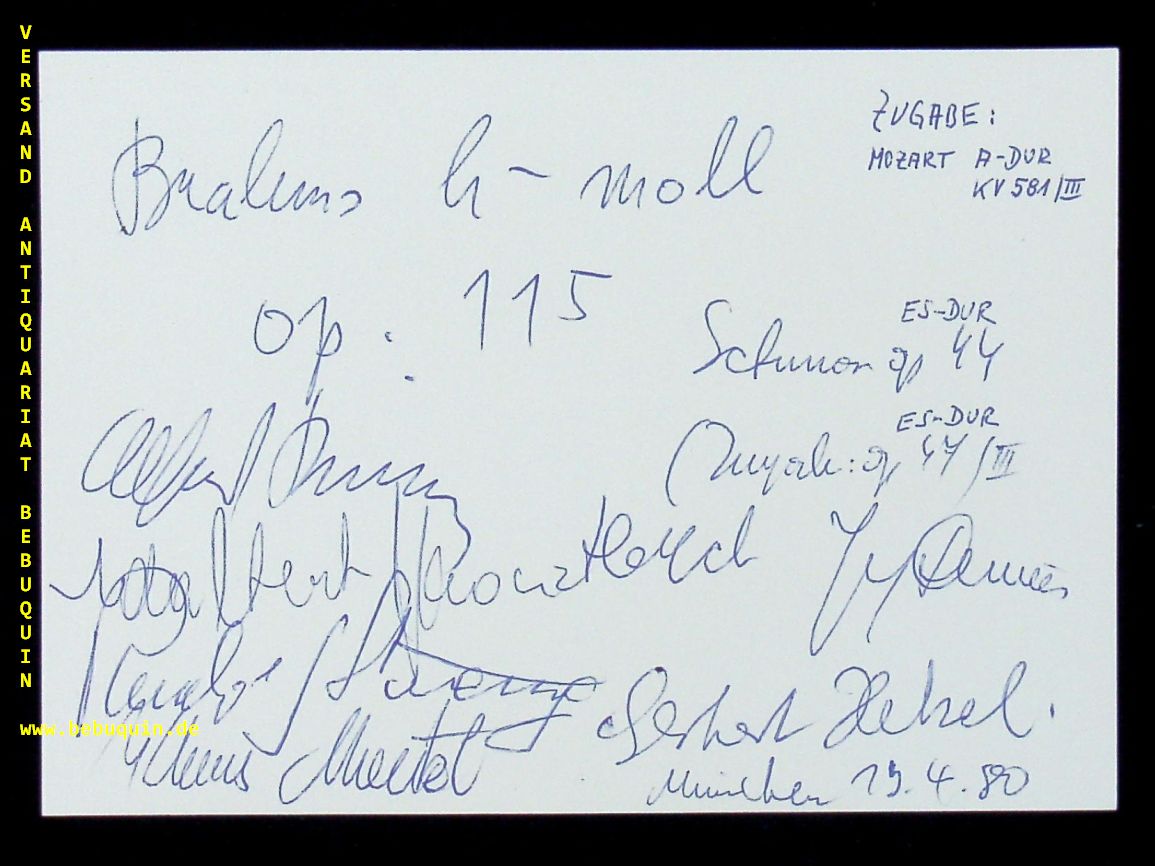 DEMUS, Jörg + PRINZ, Alfred + HETZEL, Gerhard + MAETZL, Klaus + STRENG, Rudolf + SKOCIC, Adalbert: eigenhändig von allen signierte und datierte Autogrammkarte. München, 13.4.1980. 10,5 x 14,5 cm. große Karteikarte.