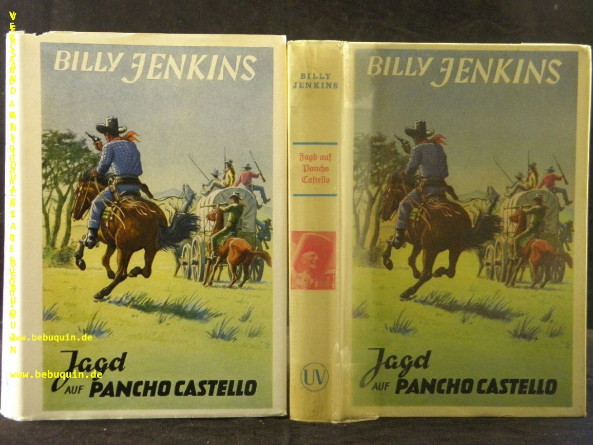 BILLY JENKINS.– REUTER, Jo: Jagd auf Pancho Castello. Sinzig (Uta), 1952. 255 S. fol. farb. ill. OPb. mit OUmschl. gestempeltes Leihbuch, Einband foliert. = Billy Jenkins Wild – West – Erzählungen, Bd. 63. 1. Aufl. dieser Ausgabe.