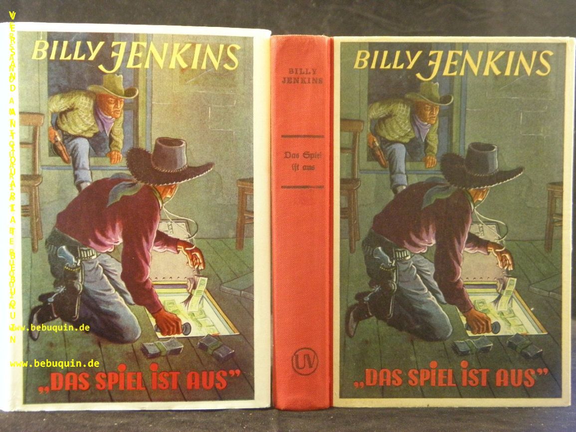 BILLY JENKINS.– ERNINGHAM, H.F.: Das Spiel ist aus. Sinzig (Uta), 1952. 264 S. farb. ill. OHLn mit OUmschl. gestempeltes Leihbuch, sonst schönes Ex. = Billy Jenkins Wild – West – Erzählungen, Bd. 53. 1. Aufl. dieser Ausgabe.