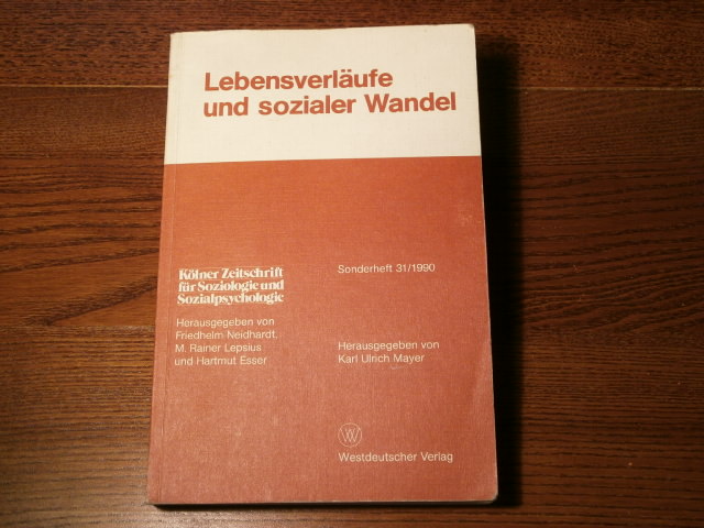 MAYER, Karl Ulrich: (Hrsg.) Lebensläufe und sozialer Wandel. Opladen (Westdeutscher), 1990. Gr. 8°. 462 (6) S. OKart. = Kölner Zeitschrift für Soziologie und Sozialpsychologie, Sonderheft 31. EA.
