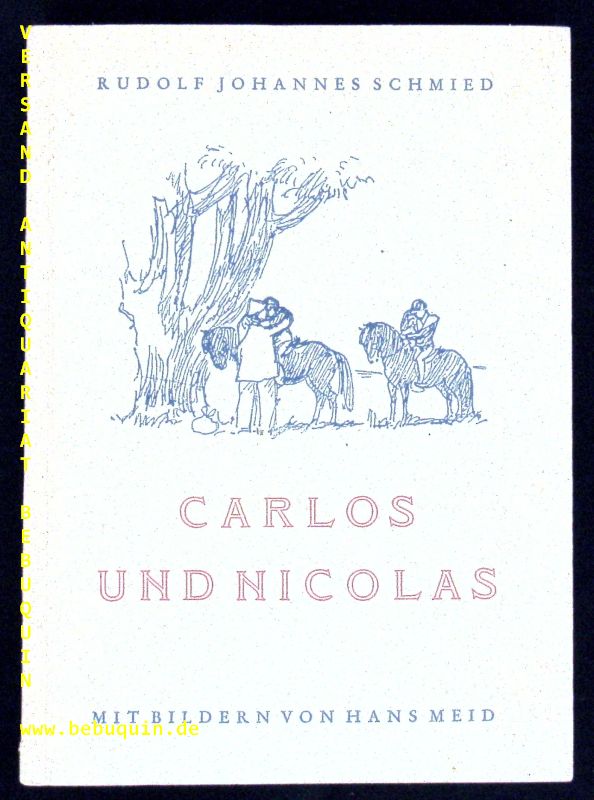 MEID.– SCHMIED, Rudolf Johannes: Carlos und Nicolas. 5. Aufl. der neuen Ausgabe. Berlin (Reiss), 1944.. 211 S. mit vielen Illustrationen von Hans Meid. ill. OKart. etws bestaubt.