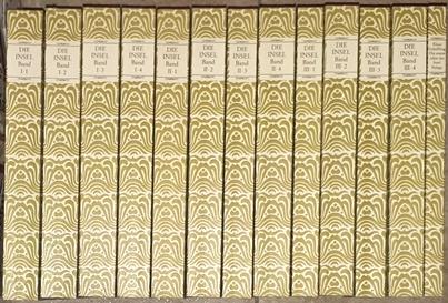 INSEL.– BIERBAUM + HEYMEL + SCHRÖDER: Die Insel. Monatsschrift mit Buchschmuck und Illustrationen. Jg. 1 – 3. Faksimileausgabe in 12 Bänden Frankfurt (Insel), 1981. Oktav. ca 4000 S. mit zahlr. Abb. ill. OKart. wie neu.
