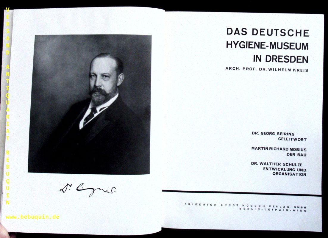 BAUHAUS.– KREIS, Wilhelm: Das Deutsche Hygiene-Museum in Dresden. Geleitwort von Georg Seiring. Martin Richard Möbius: Der Bau. Wather Schulze: Entwicklung und Organisation. Berlin, Leipzig, Wien (Hübsch), 1930. 4“. XXII S., 16 Bl., 23 S. mit zahlr. Bildern. ill. OLn mit Schwarz-, Silber- und Blauprägung. nur leicht berieben, sonst sehr feines Ex. = Neue Werkkunst. Absolut rare und museale EA des Bauhaus-Dokuments. Nicht der häufige Nachdruck.