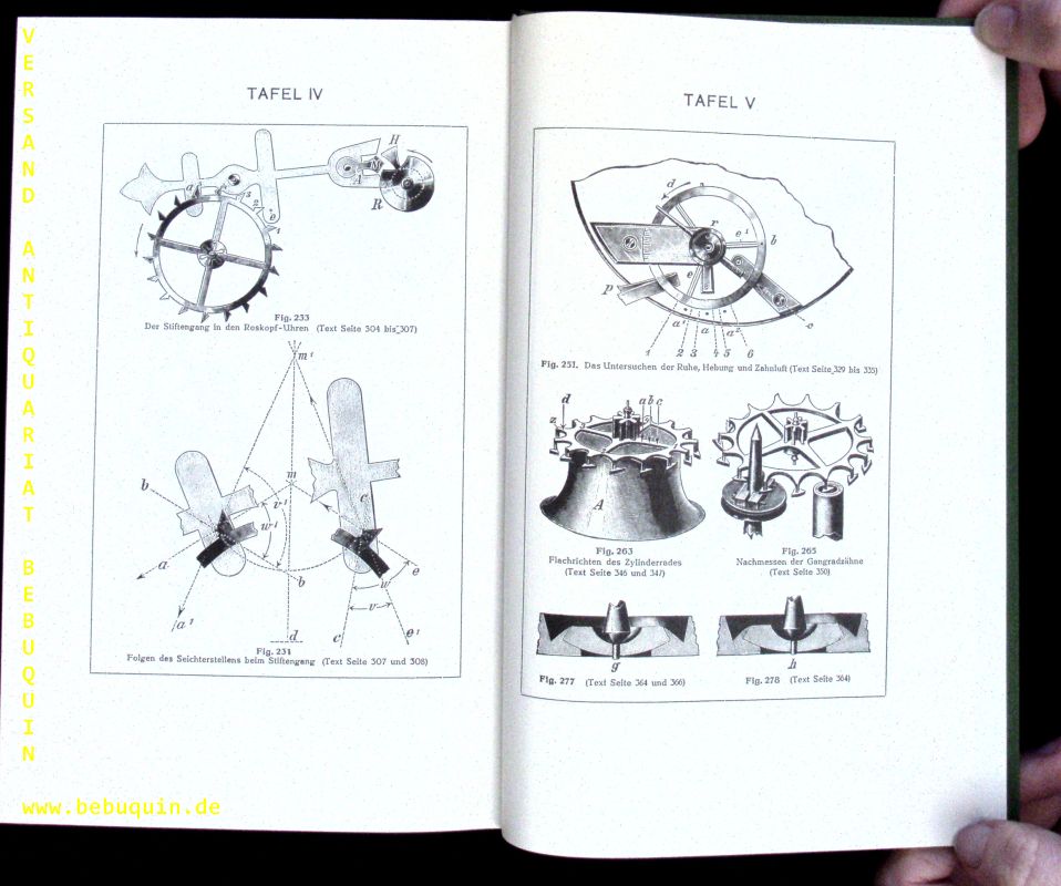 UHRMACHER.– SCHULTZ, Wilhelm: Der Uhrmacher am Werktisch. Hand- u. Nachschlagebuch für d. Taschenuhren-Reparatur. 5. ergänzte Aufl. Nachdr. d. Ausg. Berlin 1919. Osnabrück (Kuballe), 1981. XV, 483, VI S. mit zahlr. Ill., graph. Darst. OLn.