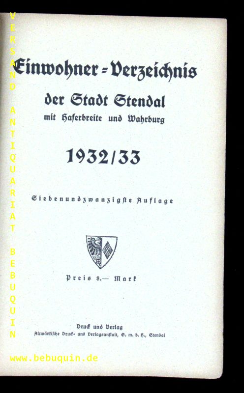 EINWOHNER - VERZEICHNIS DER STADT STENDAL 1932/33.-