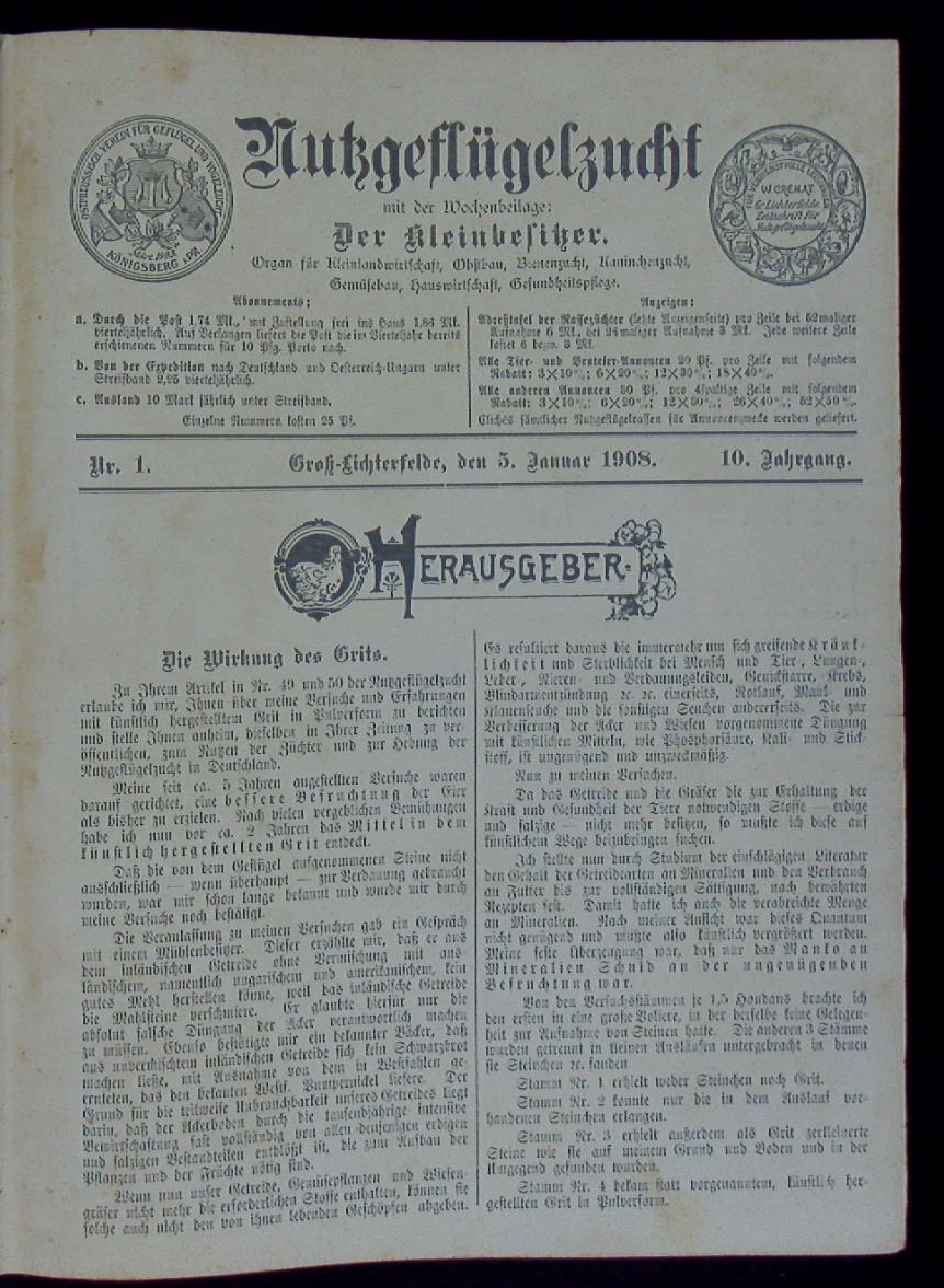 NUTZGEFLÜGELZUCHT.- Zeitschrift für einträgliche Geflügelzucht. 10. Jahrgang.