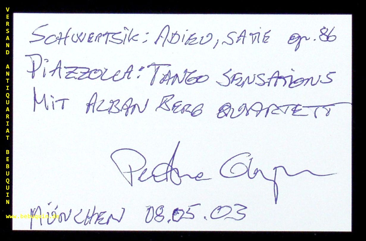 GLORVIGEN, Per Arne (Bandoneonist): eigenhändig signierte und datierte Autogrammkarte. München (Philharmonie), 8.5.2003. 8 x 12,5 cm. Karteikarte. Per Arne Glorvigen (* 2. Juni 1963 in Drammen) ist ein norwegischer Bandoneonspieler. (Wikipedia)