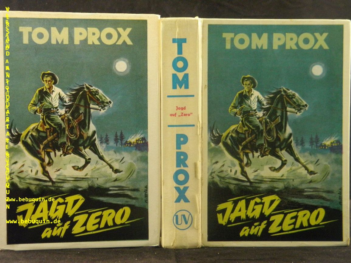 TOM PROX.– RANDALL, Rolf: Jagd auf „Zero“. Sinzig (Uta), 1952. 256 S. farb. ill. OPb mit OUmschl. gestempeltes Leihbuch, Kanten berieben. = Tom Prox abenteuerliche Erlebnisse, Bd. 27. 1. Aufl. dieser Ausgabe.