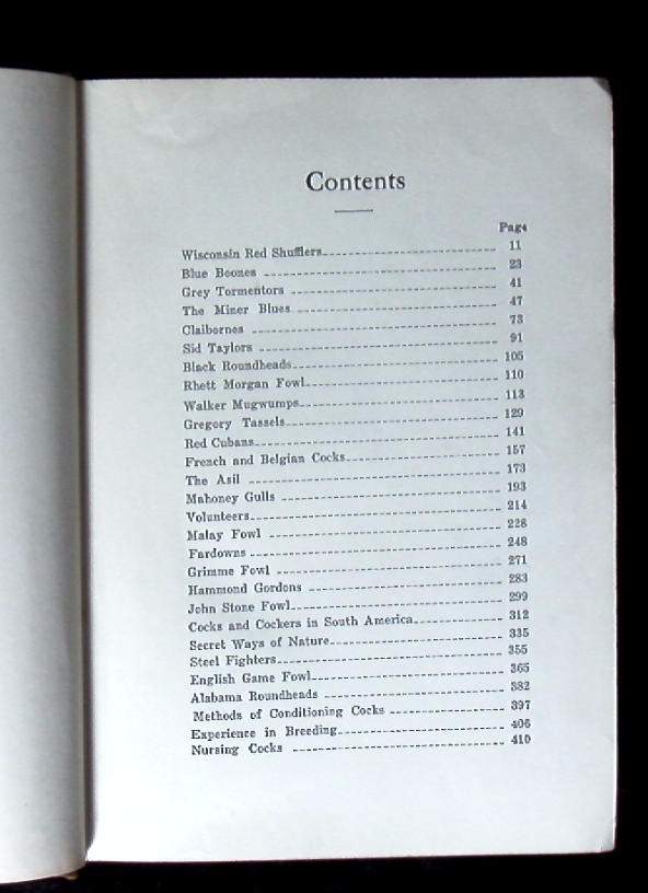 ORNITHOLOGIE.– PIERCE, D.H. u.a.: Histories of Game Strains. A history of 25 game cock strains taken from Grit & Steel magazine. o.O. (Grit and Steel), 1928. 413 S. mit zahlr. Abb. OLn. Einband etwas angeschmutzt, Titelseite fehlt. Fast unauffindbare EA. This is a VG hardcover first edition copy in brown cloth binding, 28 different histories taken from G&S with photographs, with author identified: Wisconsins Red Shufflers. – Blue Boones. – Grey Tormentors. – The Miner Blues. – Clairbornes. – Sid Taylors. – Black Roundheads. – Rhett Morgan Fowl. – Walker Mugwumps. – Gregory Tassels. – Red Cubans. – French and Belgian Cocks. – The Asil. – Mahoney Gulls. – Volunteers. – Malay Fowl. – Fardowns. -Grimme Fowl. – Hammond Gordons. – John Stone Fowl. – Cocks and Cockers in South America. – Secret Ways of Nature. – Steel Fighters. – English Game Fowl. – Alabama Roundheads. – Methods of Conditioning Cocks. – Experience in Breeding. Nursing Cocks.