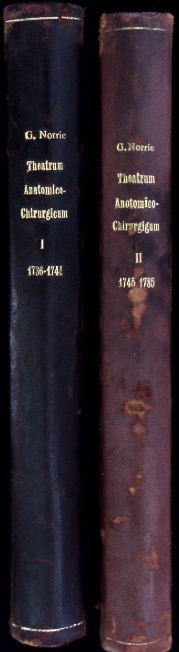 MEDIZIN.– NORRIE, Gordon: Theatrum anatomico-chirurgicum. I. + II. Teil: 1736-1785. 2 Bände. København (Levin & Munksgaard), 1932. 182, 174 S. + zahlr. Bildtafeln. OHLdr mit goldgeprägtem Rücken. Rücken kaum berieben, gutes Ex. EA.