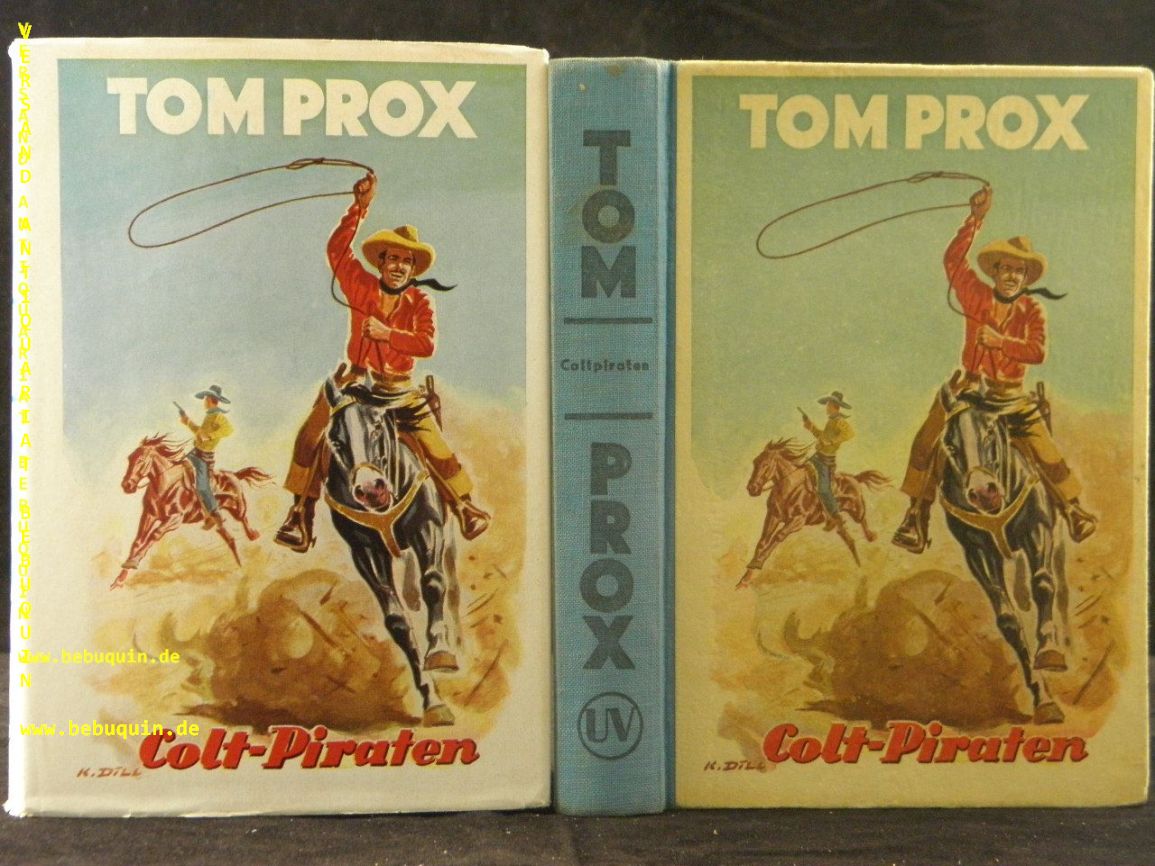 TOM PROX.– TURREK, Sam: Coltpiraten. Ein wildes Abenteuer des Westmannes Tom Prox. Sinzig (Uta), 1952. 256 S. farb. ill. OHLn mit OUmschl. schönes Ex. = Tom Prox abenteuerliche Erlebnisse, Bd. 17. 1. Aufl. dieser Ausgabe.