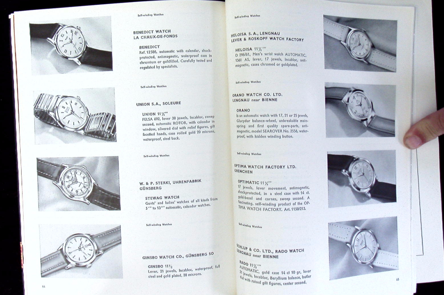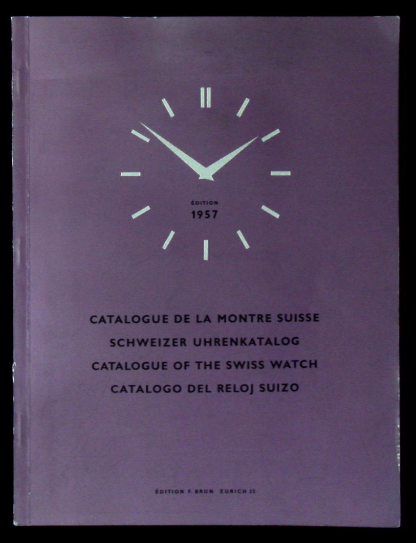 UHREN.– SCHWEIZER UHRENKATALOFG 1957.– 4sprachige Ausgabe in Französisch, Englisch, Italienisch und Deutsch. Zürich (Brun), 1957. 4°. 102 S. in aufwendiger teils farb. Gestaltung auf unterschiedlichen Papieren. ill. OKart. nur gering bestoßen. seltener Katalotg aller wichtigen Schweizer Uhren mirt fotografischen Abb. Selten.