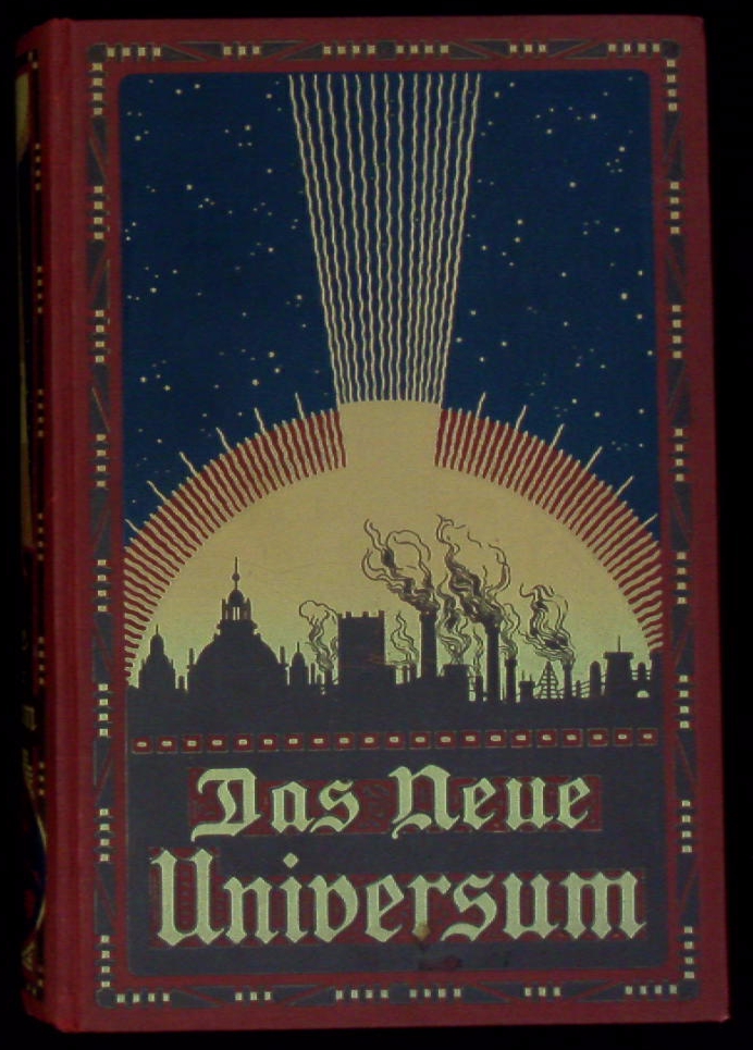DAS NEUE UNIVERSUM.– Die interessantesten Erfindungen und Entdeckungen auf allen Gebieten, sowie Reiseschilderungen, Erzählungen, Jagden und Abenteuer. Stuttgart (Union), (1916). VI, 473 S. mit sehr zahlr. z.T. farb. Abb. im Text + auf Tafeln sowie dem frischen, farbigen, mehrfach gefalteten Panorama (″Übersichtliche Darstellung eines kleines Teiles der Front im Stellungskampf“) vor dem Titel. ill. OLn. feines Ex. = Bd. 37. Das Neue Universum war eine Jugendbuchreihe. Ab 1880 erschien jährlich ein Band mit Themen aus den Bereichen Wissen, Forschung, Abenteuer, Unterhaltung. In den Jahren 1943 sowie 1945 bis 1947 wurden keine Bände veröffentlicht. 1958 erschien der Jubiläumsband 75. Im Jahr 2002 erschien nach 122 Jahren der letzte Band mit Nummer 119. Die Bände 1 bis 11 erschienen im W. Spemann Verlag, Stuttgart; die Bände 12 bis 90 im Union Verlag Deutsche Verlagsgesellschaft, Stuttgart-Berlin-Leipzig; die Bände 91 bis 119 im Südwest-Verlag, München. Außer Sachthemen druckte das Neue Universum auch fiktionale Texte. Bekannte Autoren wie Isaac Asimov und Hans Dominik und viele andere veröffentlichten so ihre Science-Fiction-Kurzgeschichten im Neuen Universum. Dabei zeichnen sich Themenwahl und inhaltliche Gestaltung durch einen starken Zukunfts-, Wissenschafts- und Machbarkeitsoptimismus aus. In den Jugendstilbänden hieß es im Untertitel: Ein Jahrbuch für Haus und Familie, besonders für die reifere Jugend, mit einem Anhang zur Selbstbeschäftigung „häusliche Werkstatt“. Später lautete der Untertitel des Jahrbuches „Ein Jahrbuch des Wissens und Fortschritts“, ab 1970 wurde es umbenannt in „Forschung, Wissen, Unterhaltung. Ein Jahrbuch“, ab 1985 hieß es „Ein Jahrbuch für Forschung, Wissen, Unterhaltung“. (Wikepedia)