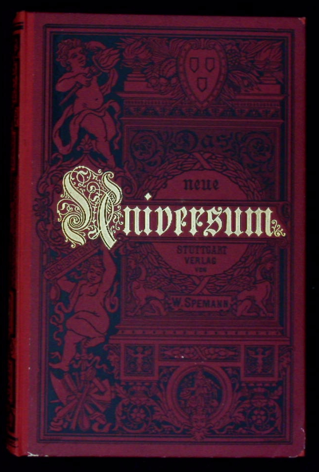 MAY, Karl: Ein Oelbrand. Erzählung aus dem fernen Westen. In: Das Neue Universum. Die interessantesten Erfindungen und Entdeckungen auf allen Gebieten. Ein Jahrbuch für Haus und Familie, besonders für die reifere Jugend. 4. Bd. Stuttgart (Spemann), 1882/83. Gr. 8°. 1 Bl. „Was das Buch will“, 310 S., 3 Bl. mit 169 Abb. im Text + auf Tafeln u.a. dem farbigen Frontispiz „Teppichweberei“. ill. OHLn mit Goldprägung. annähernd tadellos. = Bd. 4. Sehr seltenes Ex. in tadelloser Erhaltung. EA der Erzählung in 2 Teilen in Heft 1 + Heft 6, erschienen wohl im Dezember 1882 und Mai/Juni 1883. Plaul 162.