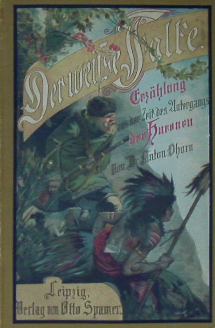 OHORN, Anton: Der weiße Falke. Erzählung aus der Zeit des Untergangs der Huronen. 3. Aufl. Leipzig (Spamer), 1899. 306 (6) S. mit 25 Textabb. von Alb. Richter sowie 6 Farbendruckbildern von F.W. Heine. farb. ill. OLn. NaV, gutes Ex. Klotz 5167/12.
