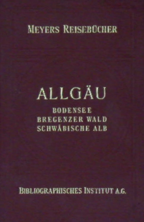 MEYERS REISEBÜCHER.– ALLGÄU.– Bodensee, Bregenzer Wald, Schwäbische Alb nebst München, Stuttgart, Augsburg und Ulm. 3. Aufl. Leipzig (BI), 1929. XXXIV, 268, 28 S. mit 15 Karten, 11 Plänen, 7 Grundrissen und 3 Rundsichten. OLn mit Goldprägung. feines Ex. (Hauenstein H 212)