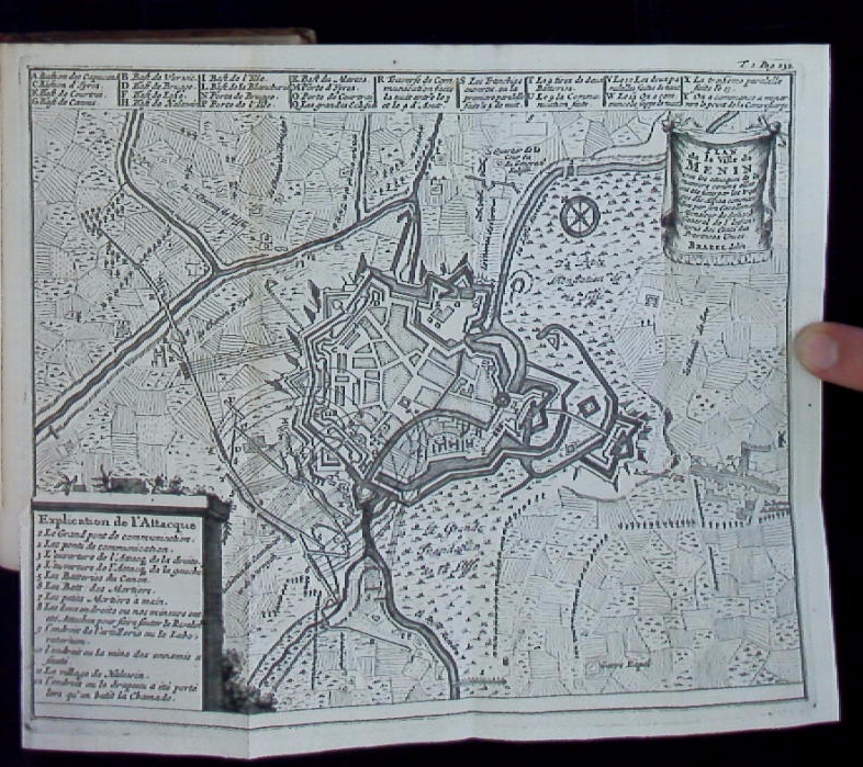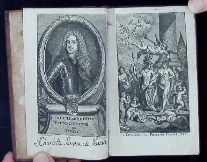 NASSAU.– LAMIGUE, Isaac: Histoire Du Prince D’Orange Et De Nassau etc. Pt. 1: Qui contient ce qui s’est passé Depuis la naissance de ce Prince jusqu’à sa Majorité. Enrichie des Plans des Villes, & de leurs Fortifications. Bd. 1 (von 2). Leuwaarden (Halma), 1715. kl. 8° 12 Bl., 252 S. 4 Bl. mit gestochenem Doppeltitel, einer Titelvignette + 10 gefalteten Plänen von Turin, Ath, Menin, Ramillis, Barcelona, Landau, Bonn, Huy, Nimegue und Kaiserswert. Ldr der Zeit mit goldgeprägtem Rücken. Rücken etwas berieben, insgesamt von feiner Erhaltung.