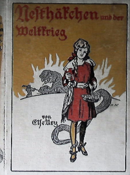 URY, Else: Nesthäkchen und der Weltkrieg. Eine Erzählung für Mädchen von 8 – 12 Jahren. Berlin (Meidinger), 1922. 191 (1) S. mit 5 farb. Bildtafeln von R. Sedlacek. farb. ill. OLn. von Max Wulff. gutes Ex. = Band 4. EA mit dem absolut seltenen Dracheneinband.
