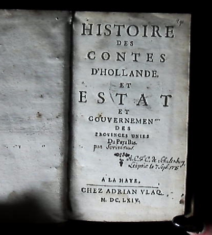SCRIVERIUS, Petrus: Histoire des contes d’Hollande. Et estat et gouvernement des provinces unies du Pays Bas. La Haye (Adrian), 1664. 12°. 4 Bl., 424 S. Prgt der Zeit. nur gering angeschmutzt, von sehr guter Erhaltung. Petrus Scriverius, niederländisch Peter Schryver oder Pieter Schrijver (* Amsterdam, 12. Januar 1576; † Oudewater, 30. April 1660) war ein niederländischer Philologe, Historiker und Schriftsteller. (Wikipedia)