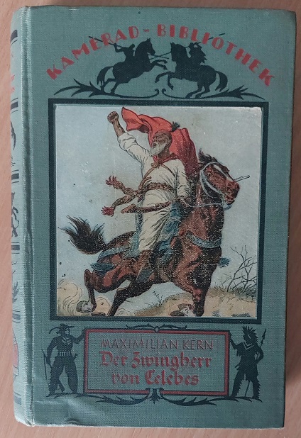 KAMERAD-BIBLIOTHEK.– KERN, Maximilian: Der Zwingherr von Celebes. 20. Aufl. Stuttgart (Union), 1922. kl. 8°. 324 S. mit zahlr. Bildern + Werbeanhang. farb. ill. OLn mit mont. Farbbild und exklusiven Vorsatzpapieren. Einband gering berieben, Bindung etwas gelockert, sonst gut. = Bd. 21. Klotz 3341/10.