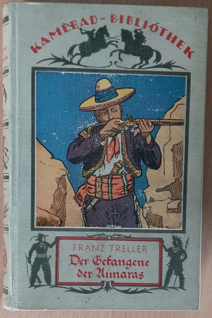 KAMERAD-BIBLIOTHEK.– TRELLER, Franz: Der Gefangene der Aimaras. Eine Abenteuer- und Indianererzählung aus den Anden. 27. Aufl. Stuttgart (Union), (1923). kl. 8°. 319 S. mit Titelbild und Textzeichnungen. ill. Oln. mit mont. Farbbild. Einband gering berieben, insgesamt schönes Ex. Klotz 7484/7.