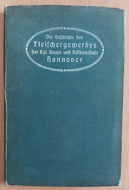 HANNOVER.– SCHMIDT, Willy: Die Geschichte des Fleischergewerbes der Königl. Haupt- und Residenzstadt Hannover. Hannover, 1907. 198 S. mit 4 Bildtafeln mit Seidenpapierschutz. OLn. Kanten leicht berieben, Ex libris der Alten Mühle. EA.
