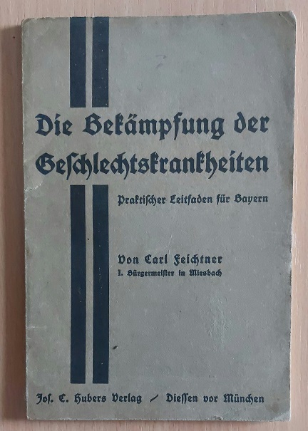 MEDIZIN.– FEICHTNER, Carl: Die Bekämpfung der Geschlechtskrankheiten. Praktischer Leitfaden für Bayern. Diessen (Huber), 1927. Oktav. 76 S. OKart. EA.