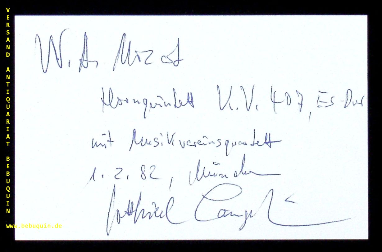 LANGENSTEIN, Gottfried (Hornist): eigenhändig signierte und datierte Autogrammkarte. München (Herkulessaal), 1.2.1982. 8 x 12,5 cm. Karteikarte.