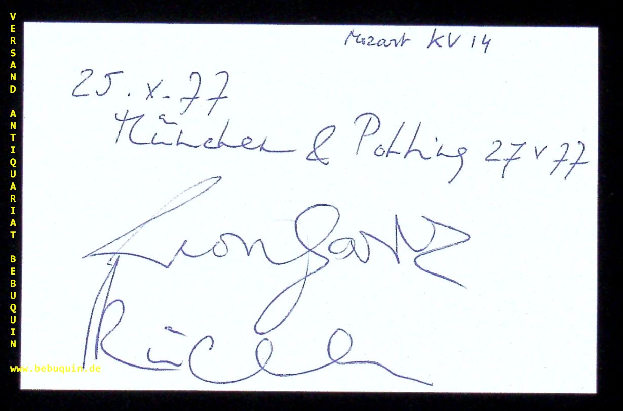 LEONHARDT, Gustav (Cembalist) + BRÜGGEN, Frans (Flötist): eigenhändig von beiden signierte und datierte Autogrammkarte. München (Philharmonie), 25.5.1977. 8 x 12,5 cm. Karteikarte. Gustav Maria Leonhardt (* 30. Mai 1928 in ’s-Graveland; † 16. Januar 2012 in Amsterdam) war ein niederländischer Dirigent, Cembalist und Organist. Frans Brüggen (* 30. Oktober 1934 in Amsterdam; † 13. August 2014 ebenda) war ein niederländischer Dirigent und Blockflötist. (Wikipedia)