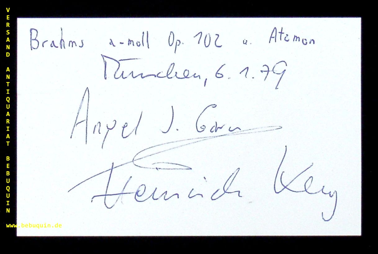 GARCIA, Angel Jesus (Violinist) + KLUG, Heinrich (Cellist): eigenhändig datierte und von beiden signierte Autogrammkarte. München (Rittersaal), 6.1.1979. 8 x 12,5 cm. Karteikarte. Angel Jesus Garcia ist in 1947 geborener spanischer Violinist. (Wikipedia)