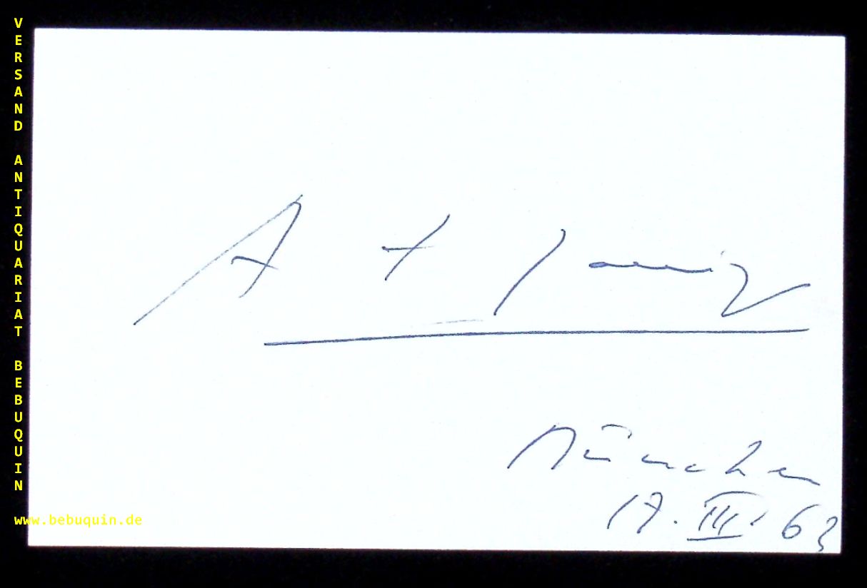 JANIGRO, Antomio (Cellist): eigenhändig signierte und datierte Autogrammkarte. München (Philharmonie), 17.3.1963. 8 x 12,5 cm. Karteikarte. Antonio Janigro (* 21. Januar 1918 in Mailand; † 1. Mai 1989 ebenda) war ein italienischer Cellist, Dirigent und Hochschullehrer. (Wikipedia)