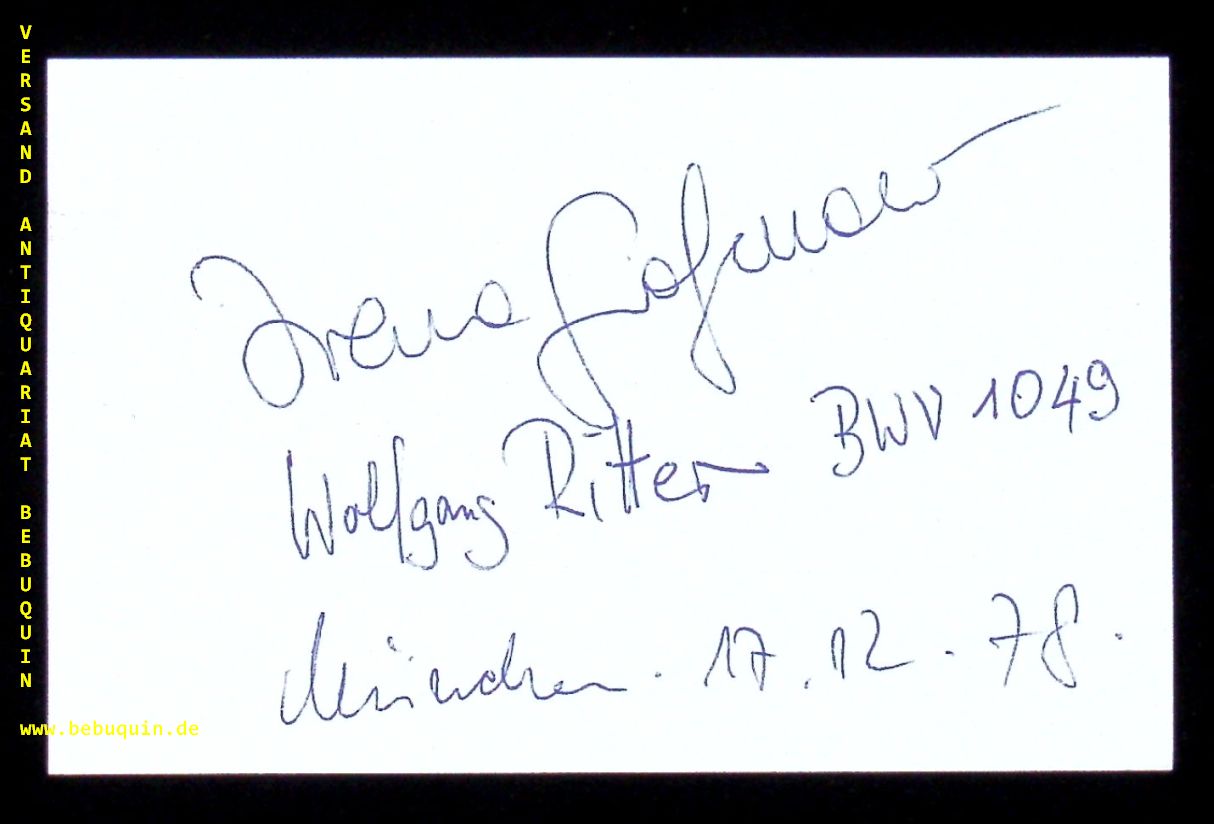GRAFENAUER, Irena + RITTER, Wolfgang (Flötisten): eigenhändig signierte und datierte Autogrammkarte. München (Philharmonie), 12.7.1978. 8 x 12,5 cm. 2 Karteikarten. Irena Grafenauer (* 1. Juni 1957 in Ljubljana, Slowenien) ist eine slowenische Querflötistin. (Wikipedia)