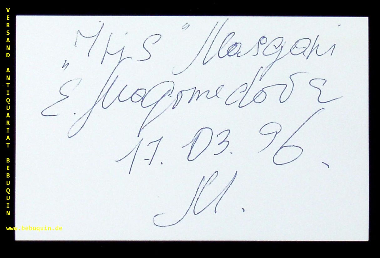 MAGOMEDOVA, eigenhändig signierte und datierte Autogrammkarte.