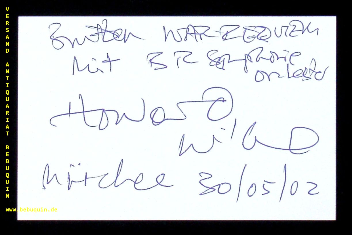 WILLIAMS, Howard (Dirigent): eigenhändig signierte und datierte Autogrammkarte. München (Philharmonie), 30.5.2002.. 8 x 12,5 cm. Karteikarte. William Howard Williams (born 25 April 1947) is a British conductor, whose international career has ranged from opera and ballet to orchestral and choral work. He conducts throughout Europe and has especial links with Hungary since his appointment in 1989 as Artistic Director and Principal Conductor of the Pannon Philharmonic (formerly Pécs Symphony) Orchestra. (Wikipedia)