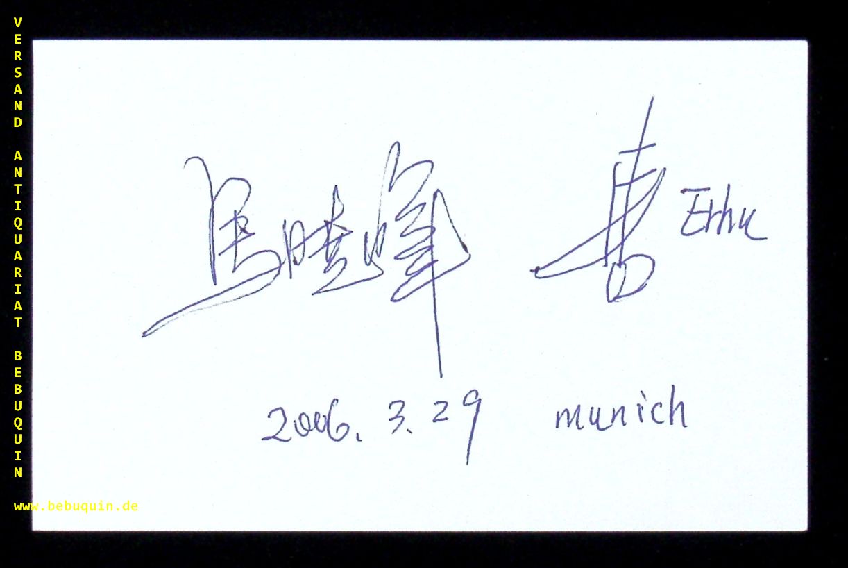 XIAOHUI, Ma (Komponistin): eigenhändig signierte und datierte Autogrammkarte. München (Philharmonie), 29.3.2006. 8 x 12,5 cm. Karteikarte. Ma Xiaohui is an erhu player and composer from Shanghai, People’s Republic of China. She is one China’s few first-class traditional artists embracing an international career. (Wikipedia)