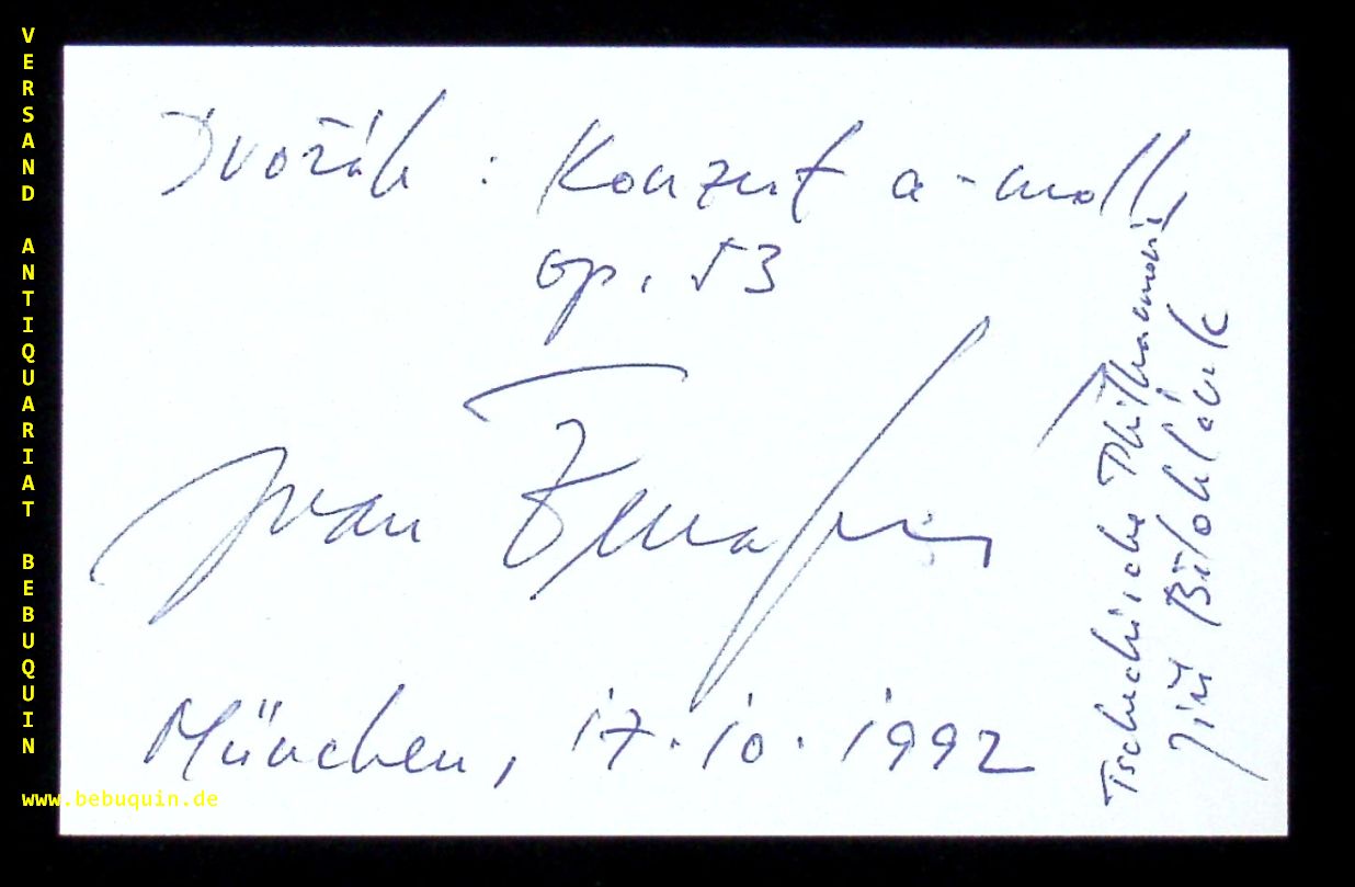 ZENATY, Ican (Violinist): eigenhändig signierte und datierte Autogrammkarte. München (Philharmonie), 17.10.1992. 8 x 12,5 cm. Karteikarte. Ivan Ženatý (born February 2, 1962) is a Czech violinist. (Wikipedia)