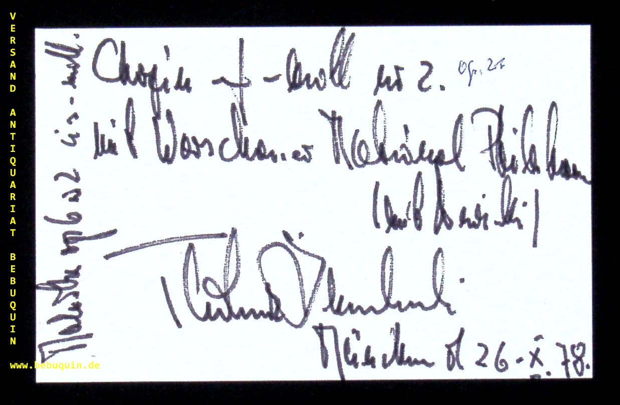 ZMUDZINSKY, Tadeusz (Pianist): eigenhändig signierte und datierte Autogrammkarte mit ausführlicher Programmbeschreibung. München, 26.10.1978.. 8 x 12,5 cm. Karteikarte. Tadeusz Zmudzinski (9 July 1924, in Chorzów – 17 October 1992, in Katowice) was a Polish pianist and educator. (Wikipedia)