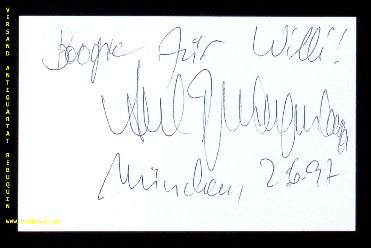 JAZZ.– ZWINGENBERGER, Axel (Pianist): eigenhändig signierte und datierte Autogrammkarte. München, 2.6.1997. 8 x 12,5 cm. Karteikarte. Axel Zwingenberger (* 7. Mai 1955 in Hamburg) ist ein deutscher Boogie-Woogie- und Blues-Pianist und -Komponist. (Wikipedia)
