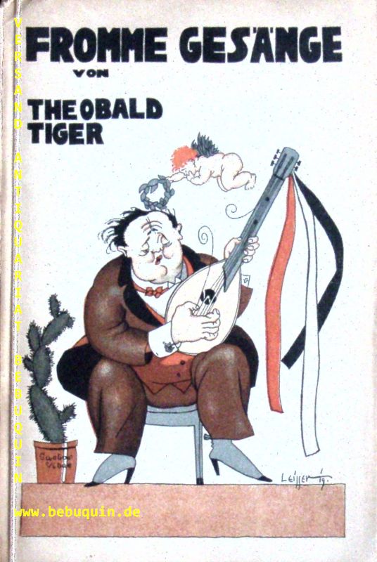 TUCHOLSKY.– TIGER, Theobald: (d.i. Kurt Tucholsky) Fromme Gesänge. Charlottenburg (Felix Lehmann), 1919. 114 S. farb. ill. OKart. von Theodor Leisser. EA WG² 3.